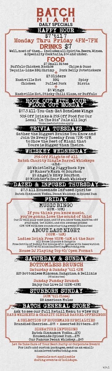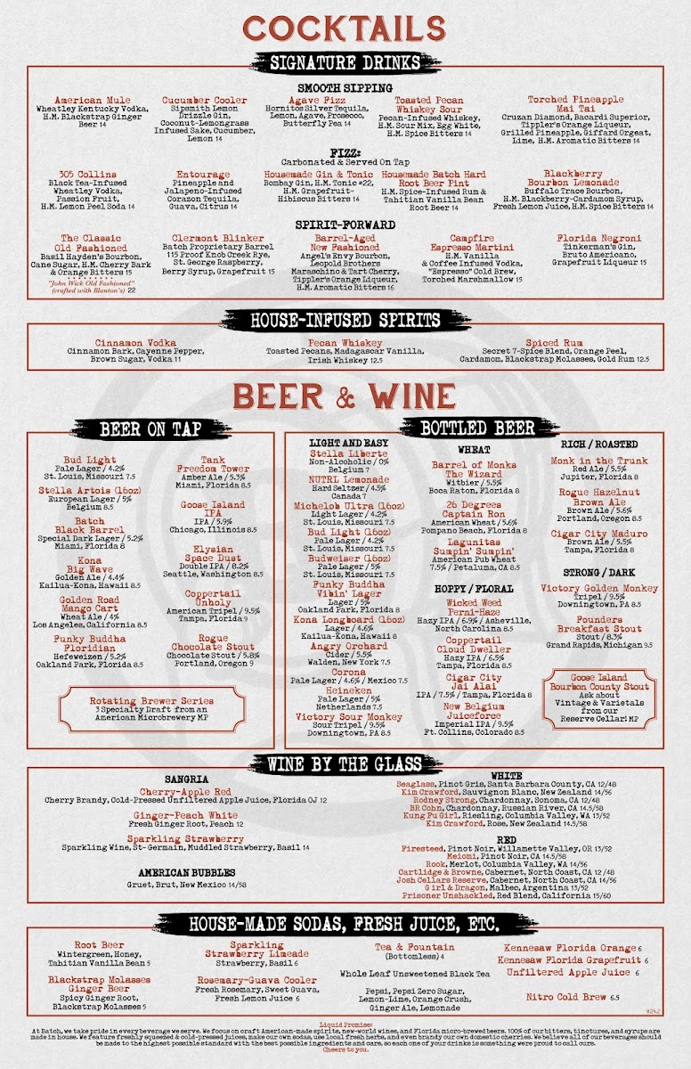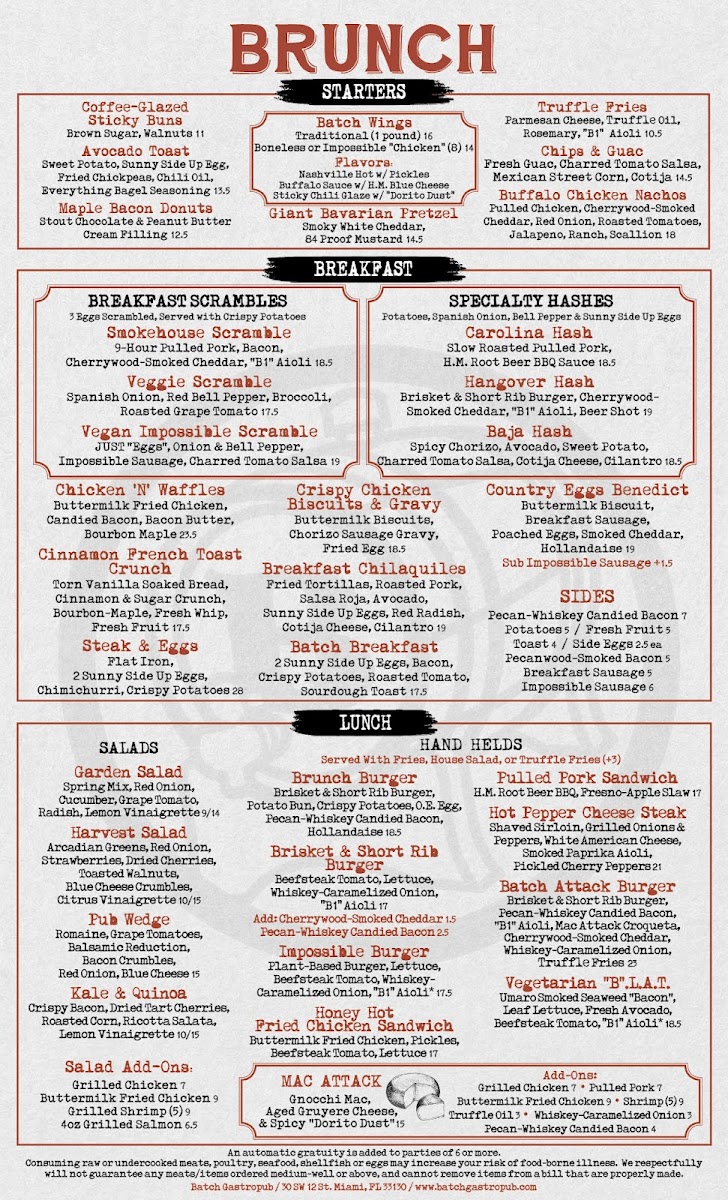 Batch Gastropub: Miami Menu